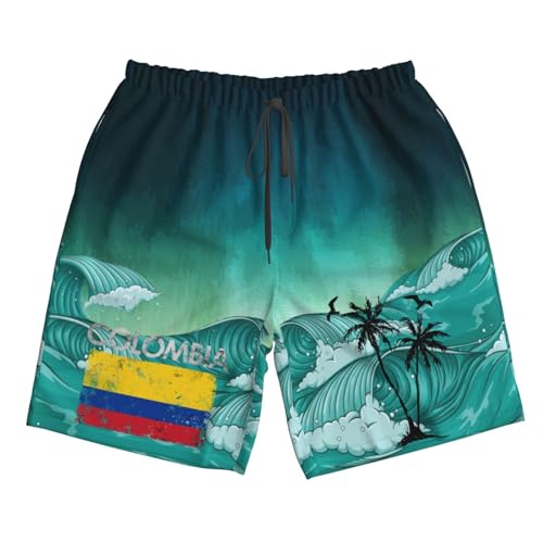 Men's Swim Trunks Bathing Suit Hawaiian Swimsuits Vintage Colombia Colombian Flag Pride Beach Shorts with Pockets,