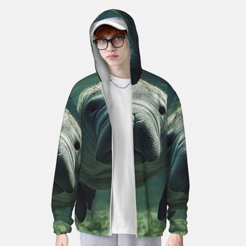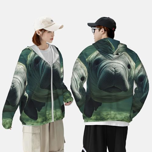 Fabric type: 100% PolyesterClosure type: ZipperNeck style: Hooded NeckSleeve type: Long SleeveBreathable & Quick-Dry: Our summer long sleeve Manatee Animals sun protection shirts are made from quick-dry and breathable elastic material that dries quickly. It breathes easily to vent excess heat and moisture to keep you cool, dry, and moving comfortably.UV Protection: Our Manatee Animals long sleeve sun shirts features cutting-edge UPF 50+ technology, effectively blocking UV rays to ensure robust sun protection during your outdoor adventures. Designed with a hood to protect the neck, and other sun-exposed areas. Ideal for extended outdoor activitiesLightweight & Comfort: The ultralight Manatee Animals fishing shirt is designed for a natural fit, the ultralight fabric and ergonomic flat-lock seam construction reduce chafing. Our fishing shirts moves effortlessly with your body, ensuring all-day comfort.Designed for Outdoor Sports: Whether you're fishing, hiking, running, swimming, rash guard, or simply enjoying the beauty of nature, our sunproof hoodie is the perfect companion for all your activities; Seamlessly blending style with protection, it meets your outdoor adventure needs with perfection.Versatile Style: This men's sun protection shirt has a simple and elegant design, which is not only suitable for matching with swimsuits and sportswear, but also can match up with a variety of pants and shoes. Now you can choose a one-of-a-kind sun protection clothing for your family, friends or yourself to protect the skin and show your fashion sense at the same time. Perfect for everyday use. first-class materials and excellent craftsmanship ensure long-lasting durability.