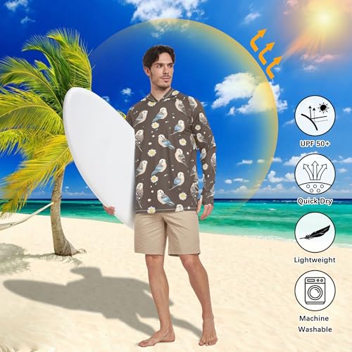 Cute Budgerigar Brown Men's Sun Shirts Hoodies Long Sleeve Beach Hoodie Swim Shirt UPF 50+ S