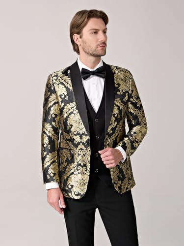 Men's Suit 3-Piece Shawl Lapel Tuxedo Set | Floral Jacquard Blazer Jacket, Slim Fit Vest & Pants for Wedding Prom