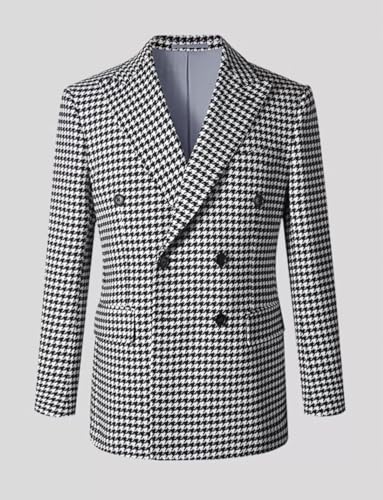 Why Choose Men's Daily Houndstooth Suit Blazer Double Breasted Buttons Jacket Peak Lapel Leisure Tuxedos Coat?