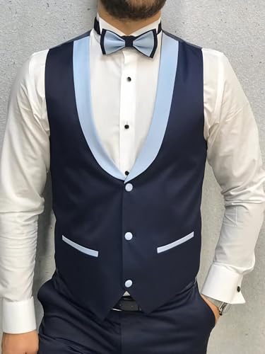 • 【FEATURES】----SLIM FIT Suits for Men,Customizable and adjustable.ONE BUTTON jacket; PEAK LAPEL; DOUBLE BREASTED Vest; U-Neck; Gold Button; Adjustable waist pants.