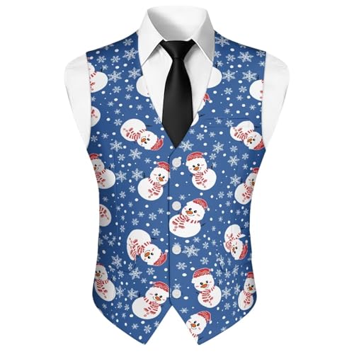 Mens Christmas Vest Slim-Fit Men's Waistcoat for Xmas Holiday Party Banquet Christmas Vest Men Xmas Tree Snow Elk