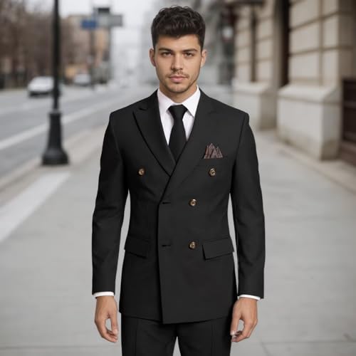 Suits for Men Slim Fit 2 Piece, Mens Double Breasted Suit Tuxedo for Men Wedding Business Prom Formal Suits