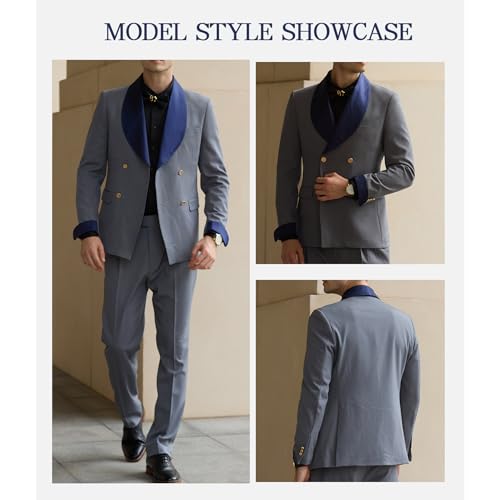 Mens Tuxedo Suits Slim Fit Double Breasted Wedding Suit for Men 2 Piece Navy Shawl Lapel Men's Formal Jacket Pants Set
