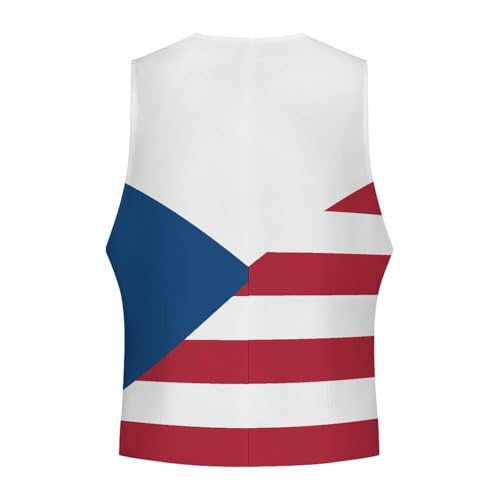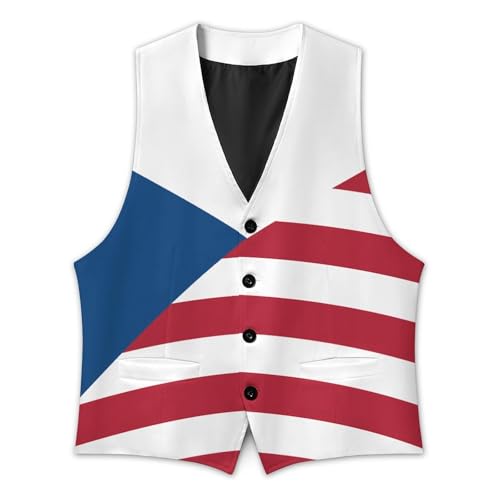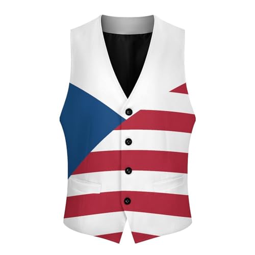 Flag of Czech Republic And USA Suit Vest for Men Waistcoat Dressy V Neck Button Down Sleeveless Business Jacket Coat