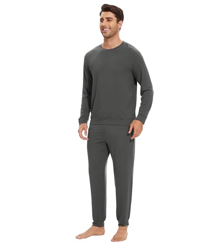 in-demand ! WiWi Men's Pajama Sets French Terry Sleepwear Long Sleeve Top and Pants Pjs with Pockets Drawstring S-XXL