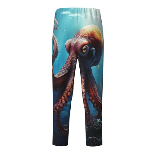 Mens Pajama Pants gentle Pajama Bottom Ocean Animal Octopus Sleep Pant Lounge Pants with Pockets PJ Bottoms