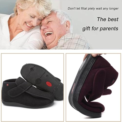 The warm diabetic shoes are crafted from high-quality, super-soft wool cotton fabric, providing a soft and pleasant feel. The thicker fabric is durable and wear-resistant, ensuring long-lasting useThe inner material is made of artificial plush, offering full coverage for the entire foot, ensuring extreme comfort and warmth throughout the dayThe durable rubber sole features a high rebound design that provides stable support and shock reduction. Additionally, the sole is equipped with a non-slip particle backsheet, delivering strong grip and excellent anti-slip propertiesThese shoes make the perfect gift for birthdays, Christmas, or Father's Day for your dad, husband, grandpa, or loved onesThey are especially beneficial for individuals suffering from conditions such as lymphedema, arthritis, edema, foot swelling, sensitive feet, diabetes, hammer toe, and other foot health problems Perfect for everyday use. superior materials and excellent craftsmanship ensure long-lasting durability.