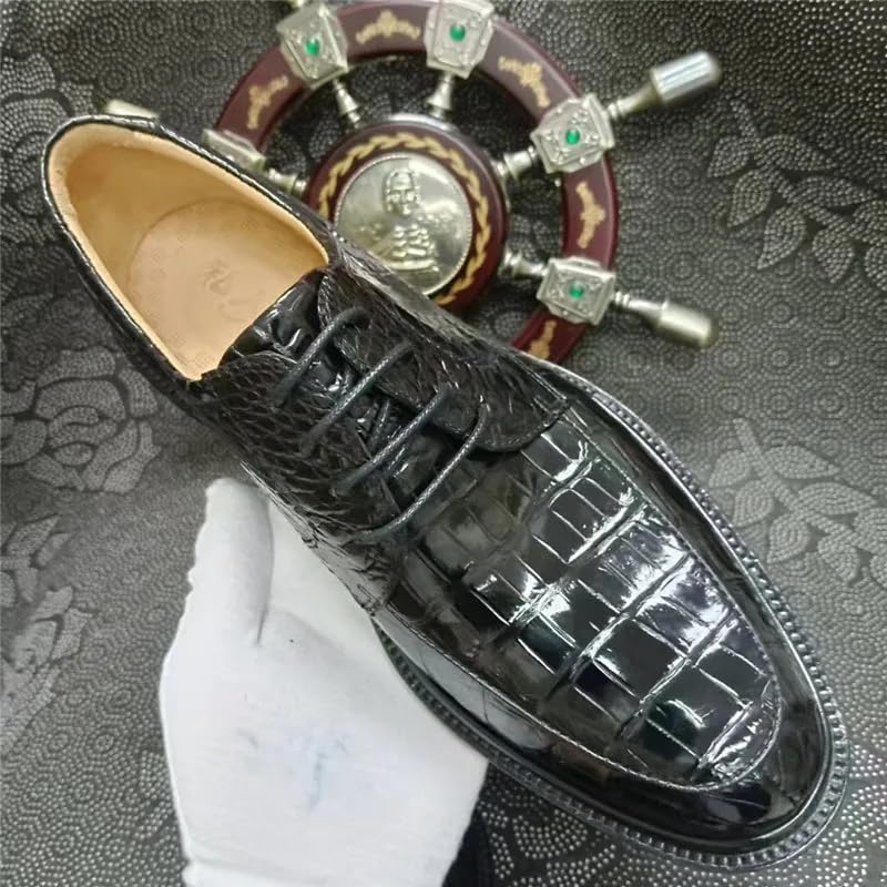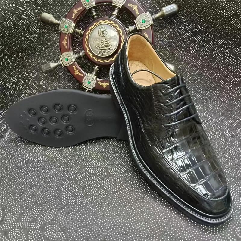More information about Authentic Crocodile Skin Light Weight Men's Pointed Toe Derby Shoes Genuine Alligator Leather Male Business Lace-up Dress Shoes