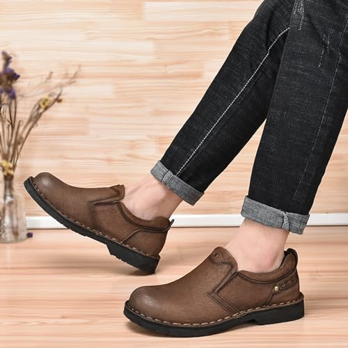 Men's Genuine Leather Lace-up Casual Oxfords,Fashion Round Toe Slip-on Business Dress Loafers,pleasant Non-Slip Formal Work Shoes