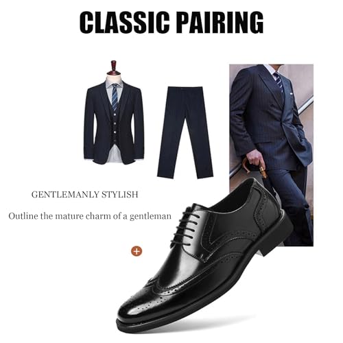 Men's Leather Retro Wingtip Oxford Shoes iconic Lace-Up Plain Toe Slip-On Low Heel Dress Brogue Derby Shoes for Business Wedding Work Casual Occasions